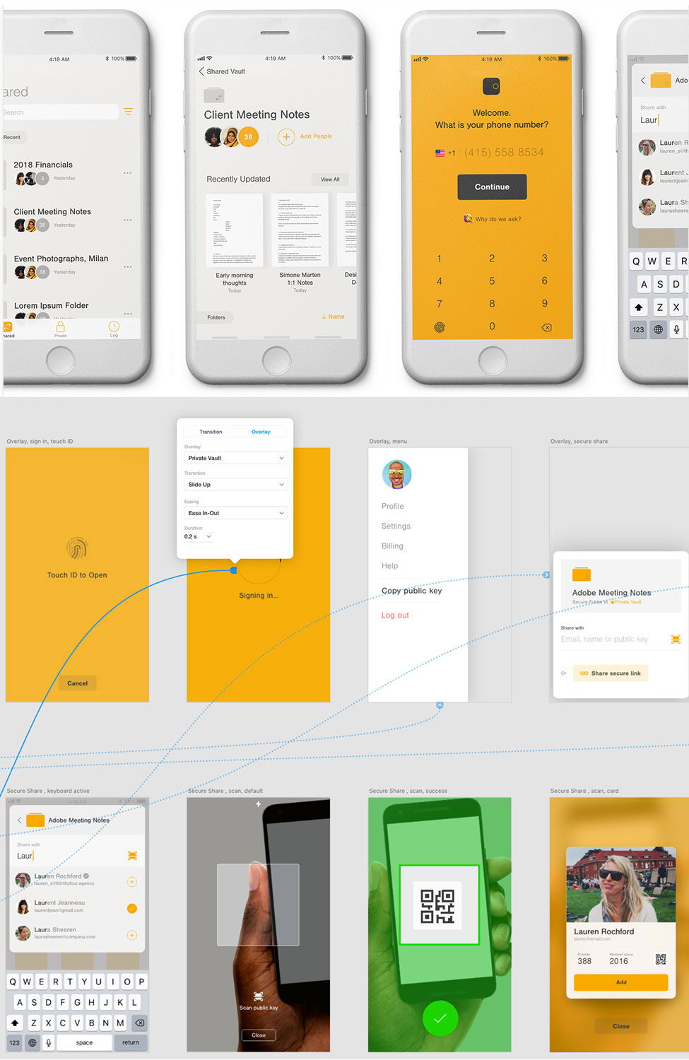 The entire app concept is brought to life and linked together as a fully working XD prototype.
