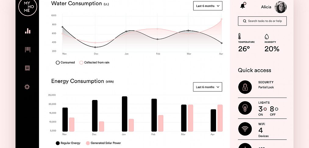 A simple, two-colored home monitoring dashboard template for Adobe XD.