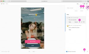 You can pin a specific location to highlight the focus of a comment. Click the Place a pin button (1), and then click the location on the artboard. Pinned comments are marked by a yellow circle and are assigned a number. To highlight the location of a pinned comment, hover over it and that yellow circle will turn blue. You can also turn a regular comment into a pinned comment using the Place a pin button that’s available when you hover over a comment. The notification email that you receive whenever you get a pinned comment comes with a direct link to that particular artboard.