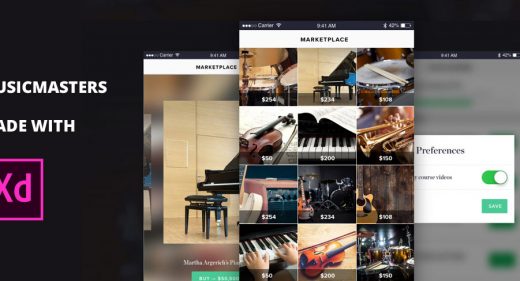 MusicMasters Adobe XD UI kit